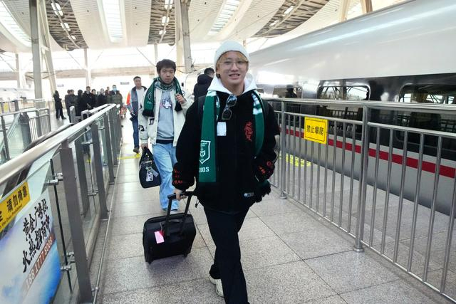 15岁的小球迷王嘉恺今天早早就来到了北京南站。这是他第一次前往客场看国安队的比赛。能够和家人一起坐着高铁去看球,对他来说一切都是那么新奇。“我们是通过球迷协会报的名,购票也非常顺利。能够和这么多球迷一趟车,我感到非常激动,非常幸福。”